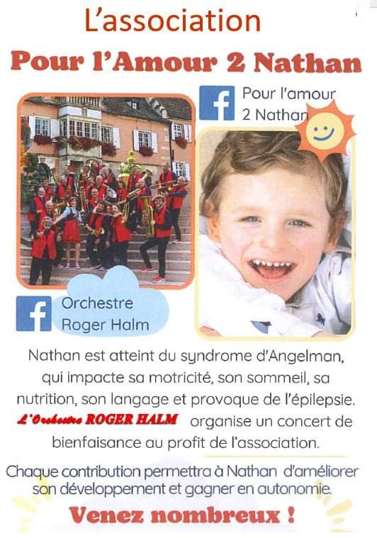 Et voilà la prochaine prestation de l’Orchestre Roger Halm . L’orchestre soutient et contribue à l’amélioration de la vie du petit NATHAN atteint du syndrome d’Angelman, avec un concert à MOMMENHEIM le SAMEDI 08 JUIN à l’Eglise Saint Maurice à 20h00. Venez passez un super moment de convivialité avec nous avec notre chère Bloosmusik pour une BONNE CAUSE !